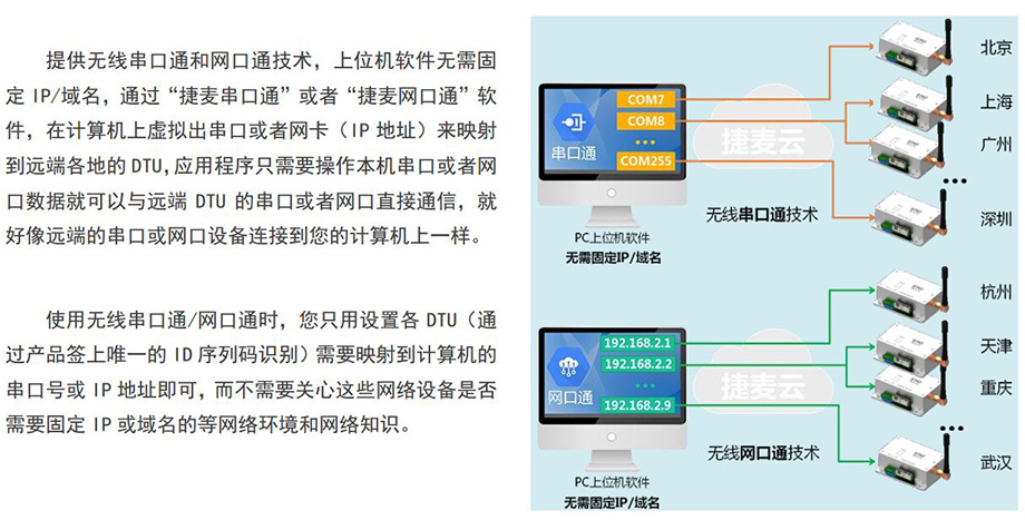 ¡î ÌṩÎÞÏß´®¿ÚÍ¨Íø¿Úͨ¼¼Êõ£¬¼ÆËã»úÉÏÐéÄâ³ö´®¿Ú»òIPÓ³ÉäDTU
