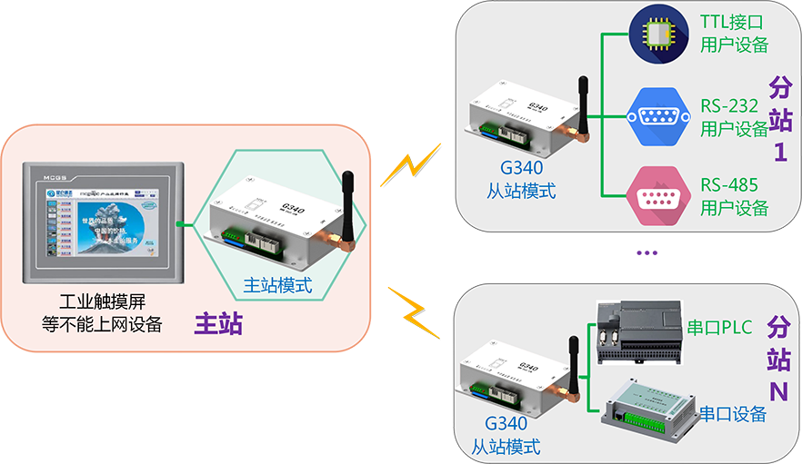 Èç¹ûÄúµÄÖ÷Õ¾É豸ÀýÈ繤¿Ø´¥ÃþÆÁ¡¢¹¤¿Ø»ú»òÕß¼ÆËã»ú²»ÄÜÉÏÍø£¬ÄÇôÐèÒªÒ»¸ö¹¤×÷ÔÚÖ÷վģʽDTUÉ豸£¬¹¤×÷ÔÚÖ÷վģʽµÄDTU£¬Ö§³ÖÓë¶à¸ö·ÖÕ¾ DTU ͨÐÅ£¨×î¶à 65535 ¸ö£©